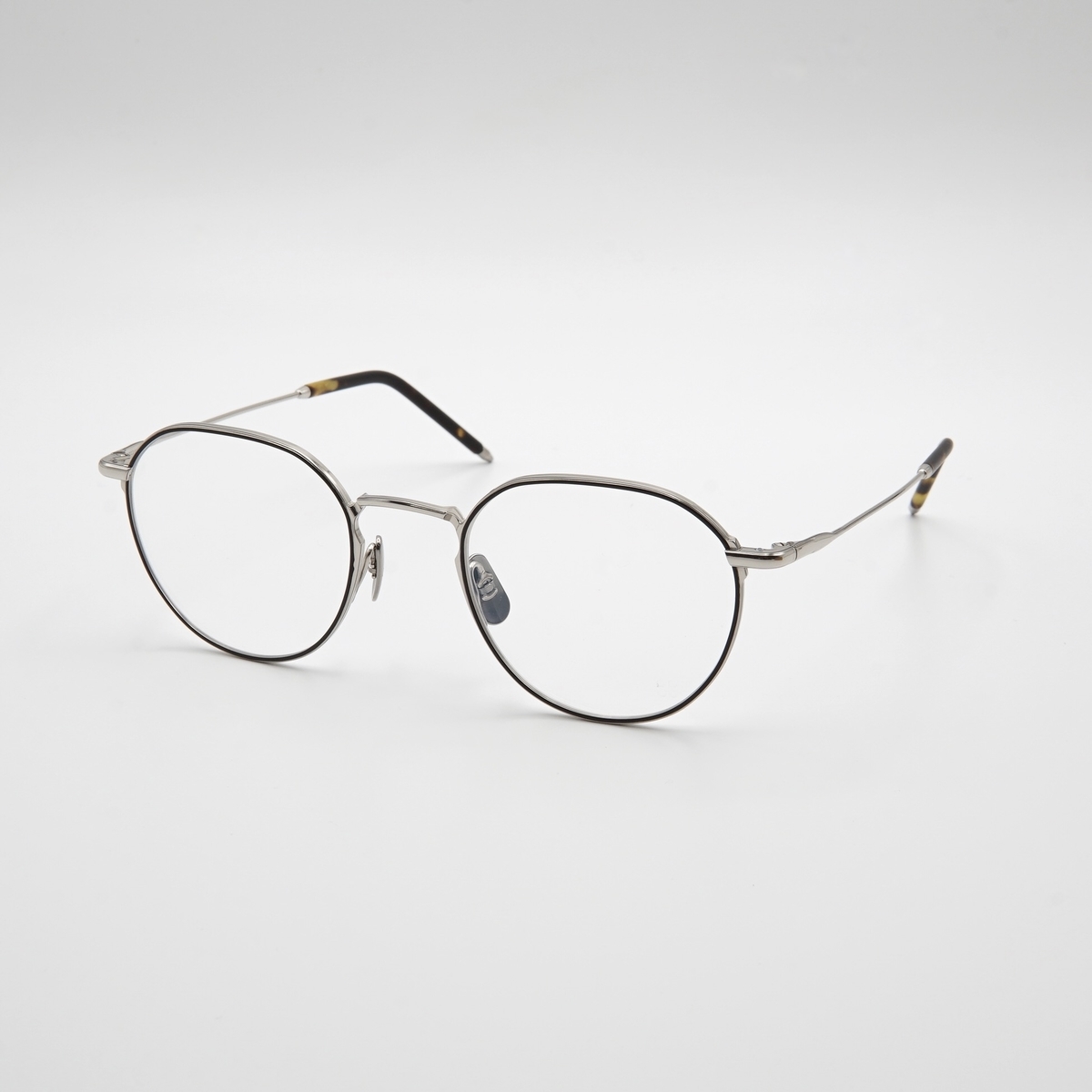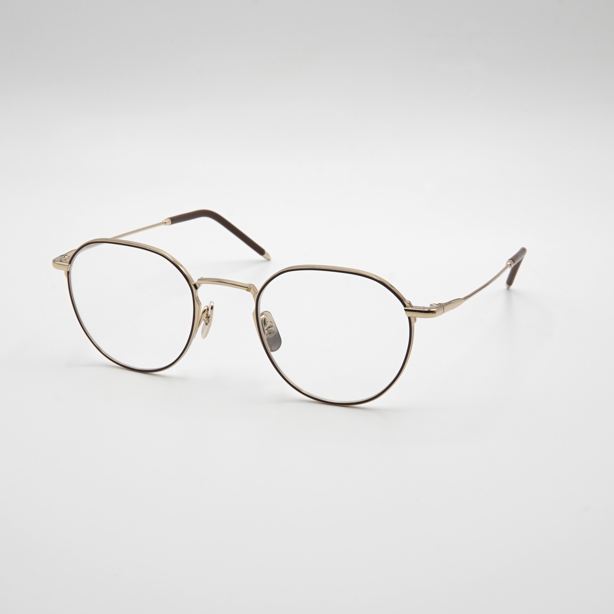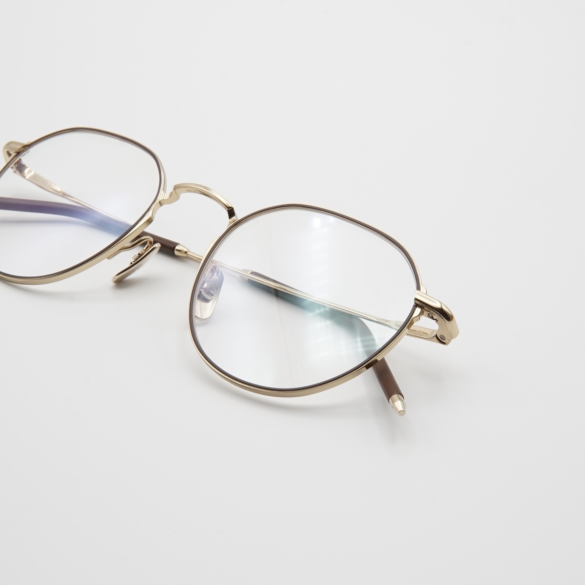 やや厚みを持たせたフロントリムの前面に、七宝でアクセントカラーが施してある新作「JIM」。シルバーにはブラックが、ゴールドにはブラウンが合わせてあります。