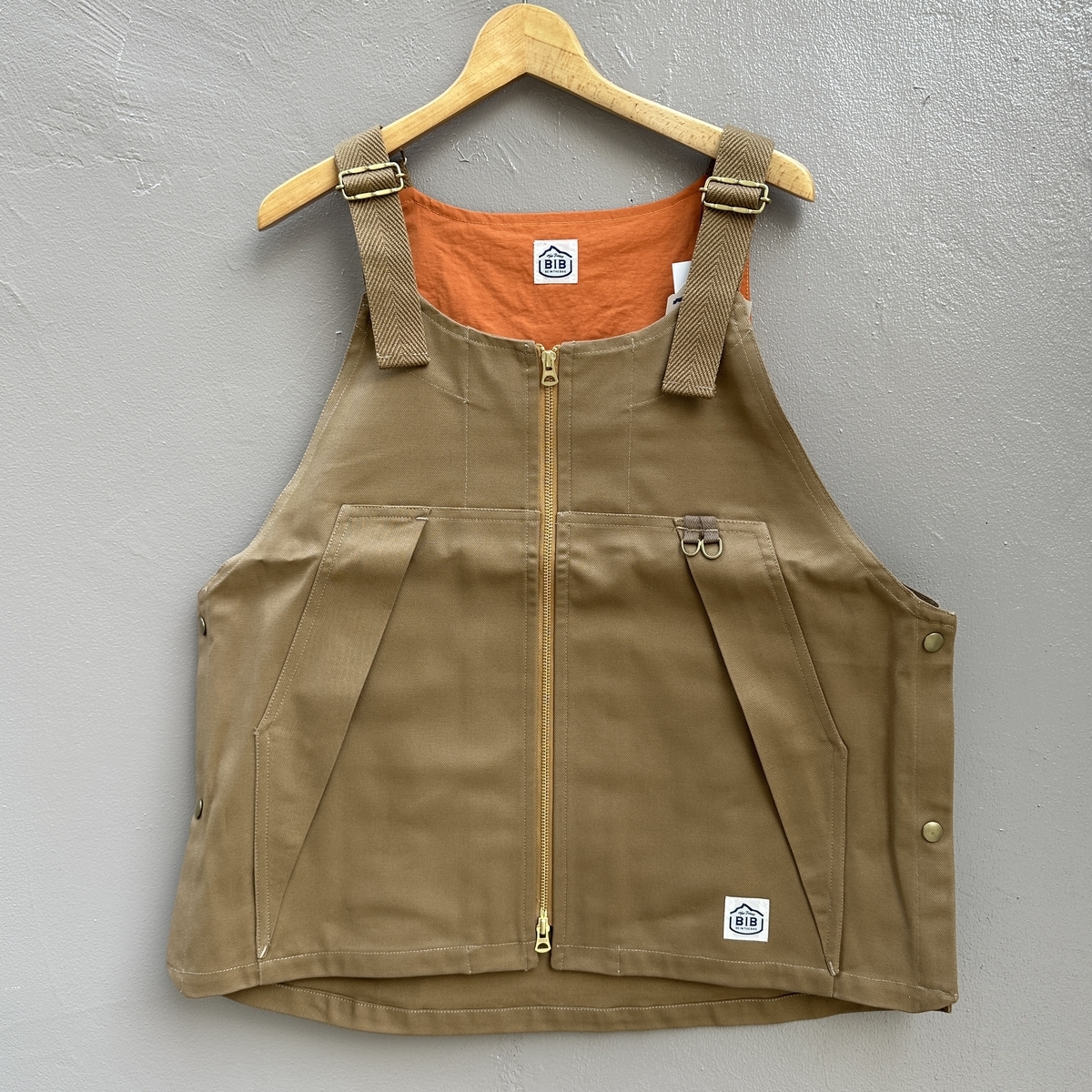 「BIB」は1950年代半ば、仕立て職人のリチャードは趣味の登山が高じて、バックパックを背負ったままでも出し入れしやすい、大きなポケット付きのビブスを考案した、という架空のストーリーに基づき作られたブランドで、キャンプやアウトドアはもちろん、カフェなどのユニフォームとしても使用できる、機能性とファッション性を兼ね備えた新しいウェアです。